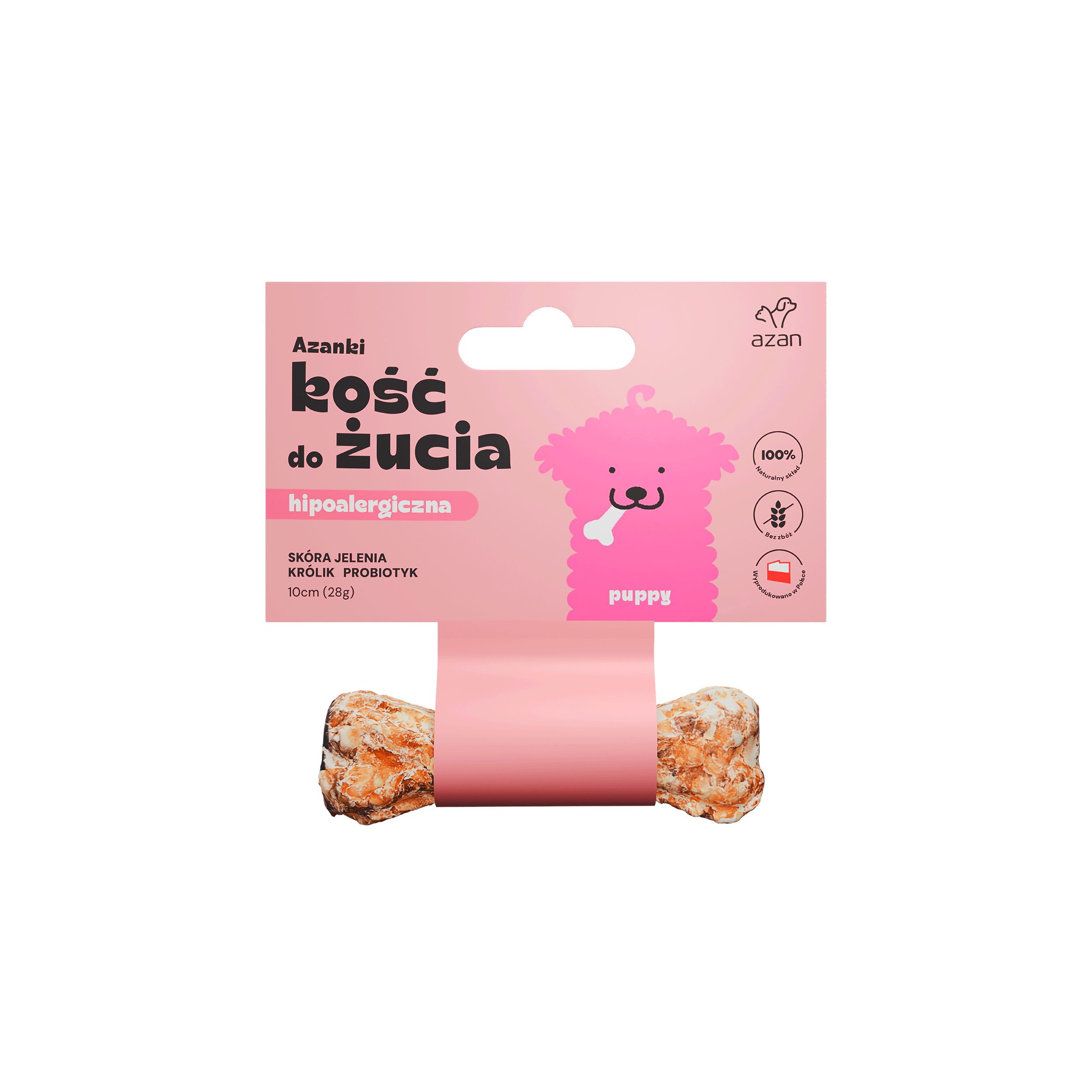 Azanki Kość do żucia Puppy 10cm – Naturalny gryzak ze skóry jelenia z królikiem i probiotykiem dla szczeniąt