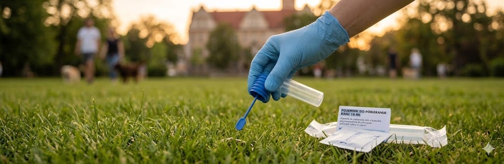 2. Pobranie: Za pomocą łyżeczki nabierz niewielką ilość kału (z kilku różnych miejsc odchodów, aby zwiększyć szansę na wykrycie pasożytów).