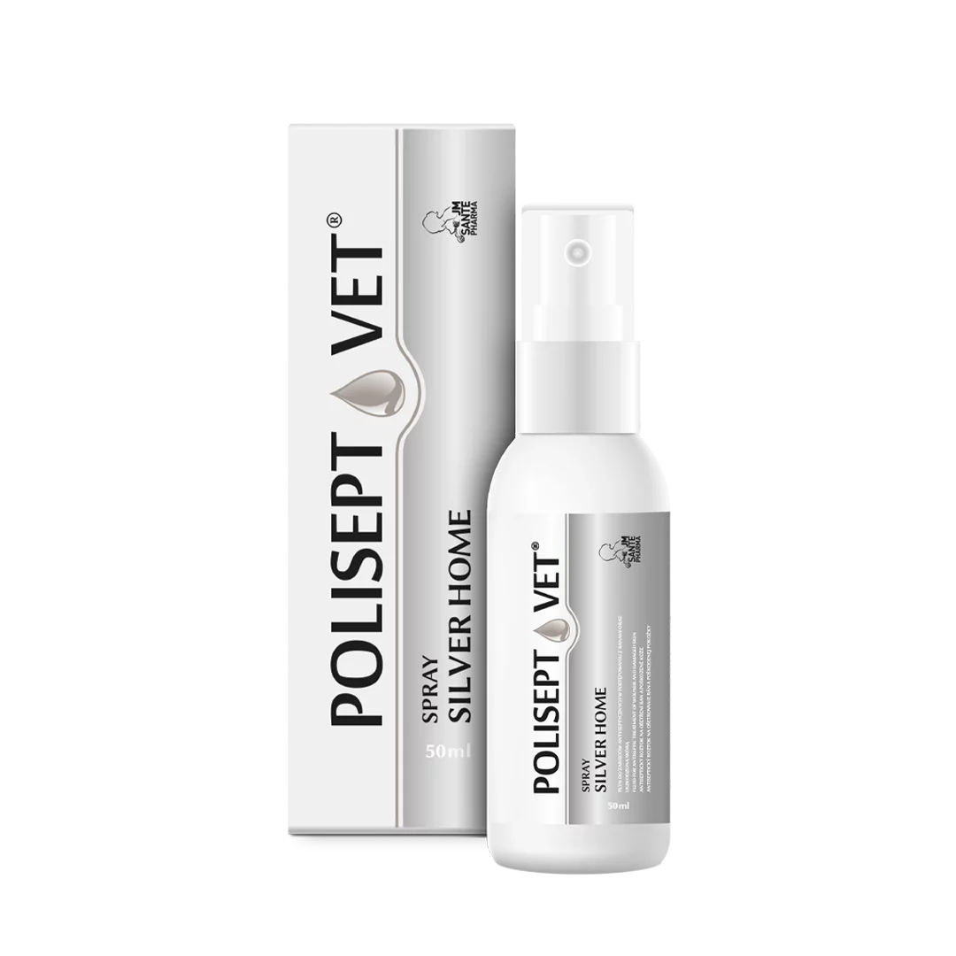 POLISEPT® VET Spray Silver Home 50ml to specjalistyczny preparat łączący sprawdzoną technologię antyseptyczną z regeneracyjną mocą srebra koloidalnego. Stworzony z myślą o bezpiecznej i domowej pielęgnacji uszkodzonej skóry u psów i kotów.