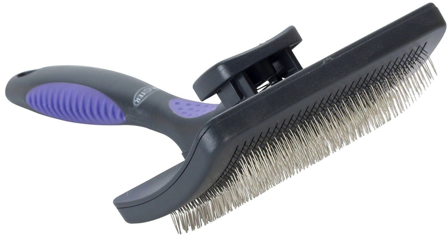 Szczotka samoczyszcząca Buster L – Miękkie szpilki dla psów (fioletowa)